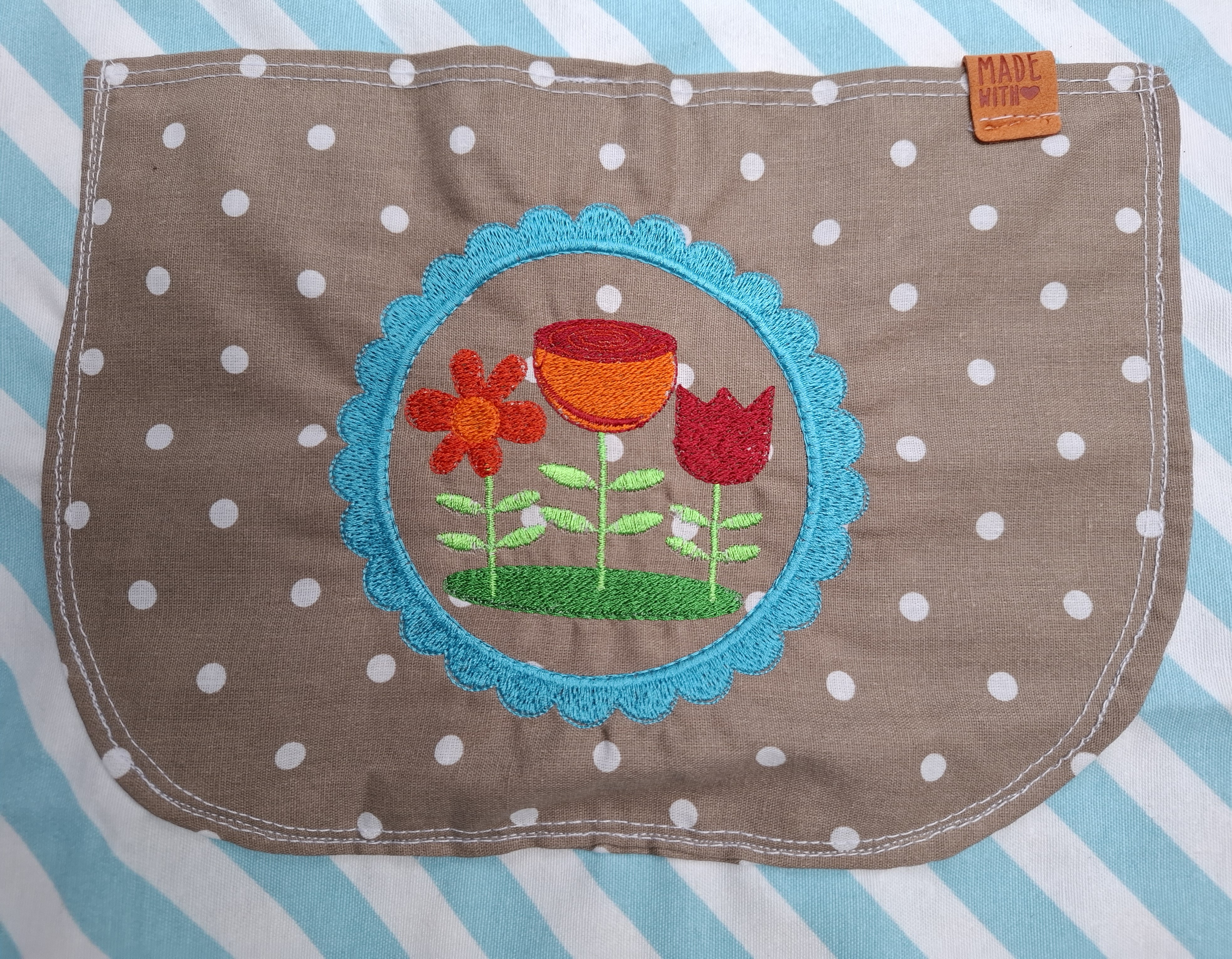 Handgefertigt mit Stickerei "Blumen" und liebevoll bearbeitet.