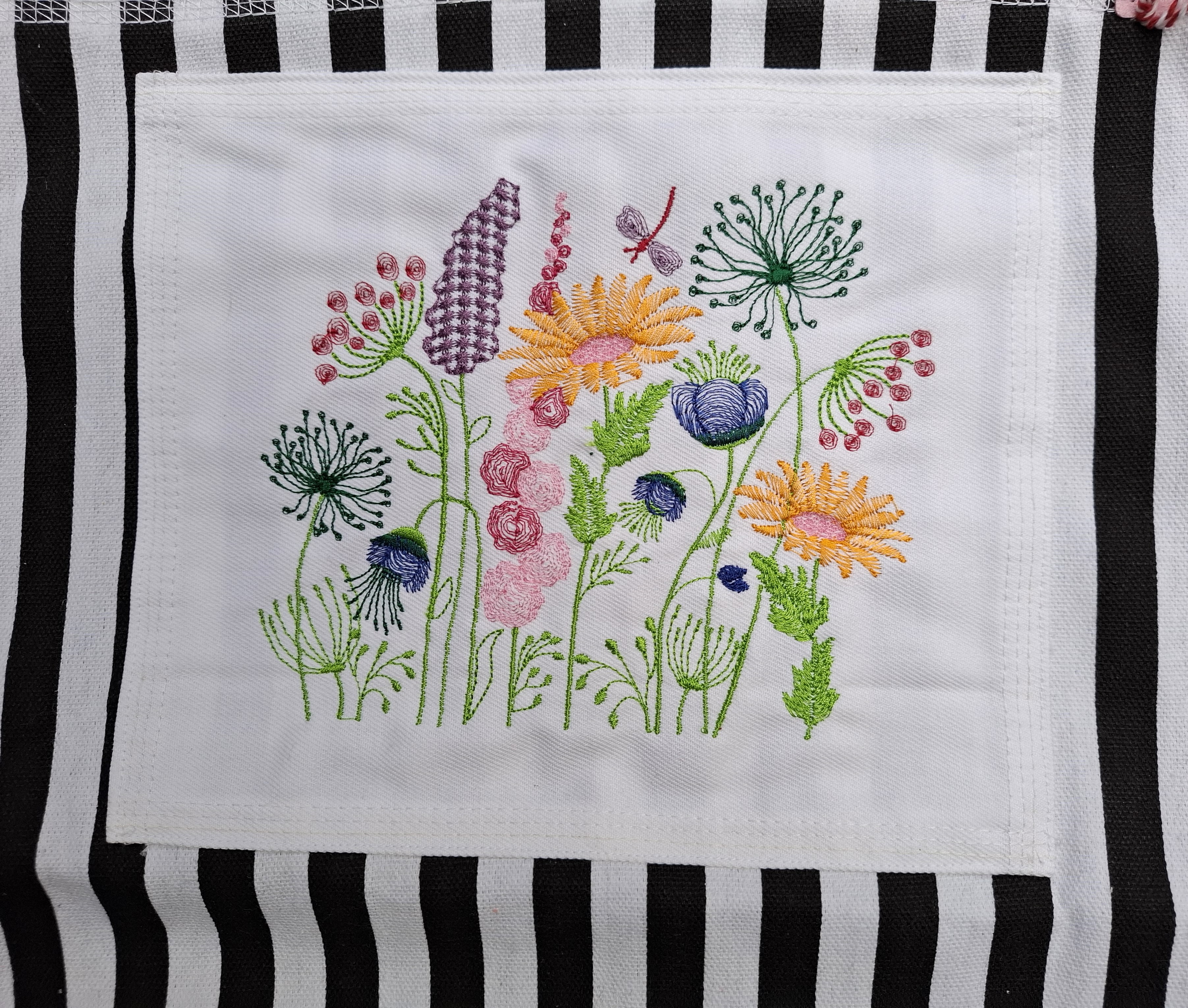 Handgefertigt mit Stickerei "Kornblumen" und liebevoll bearbeitet.