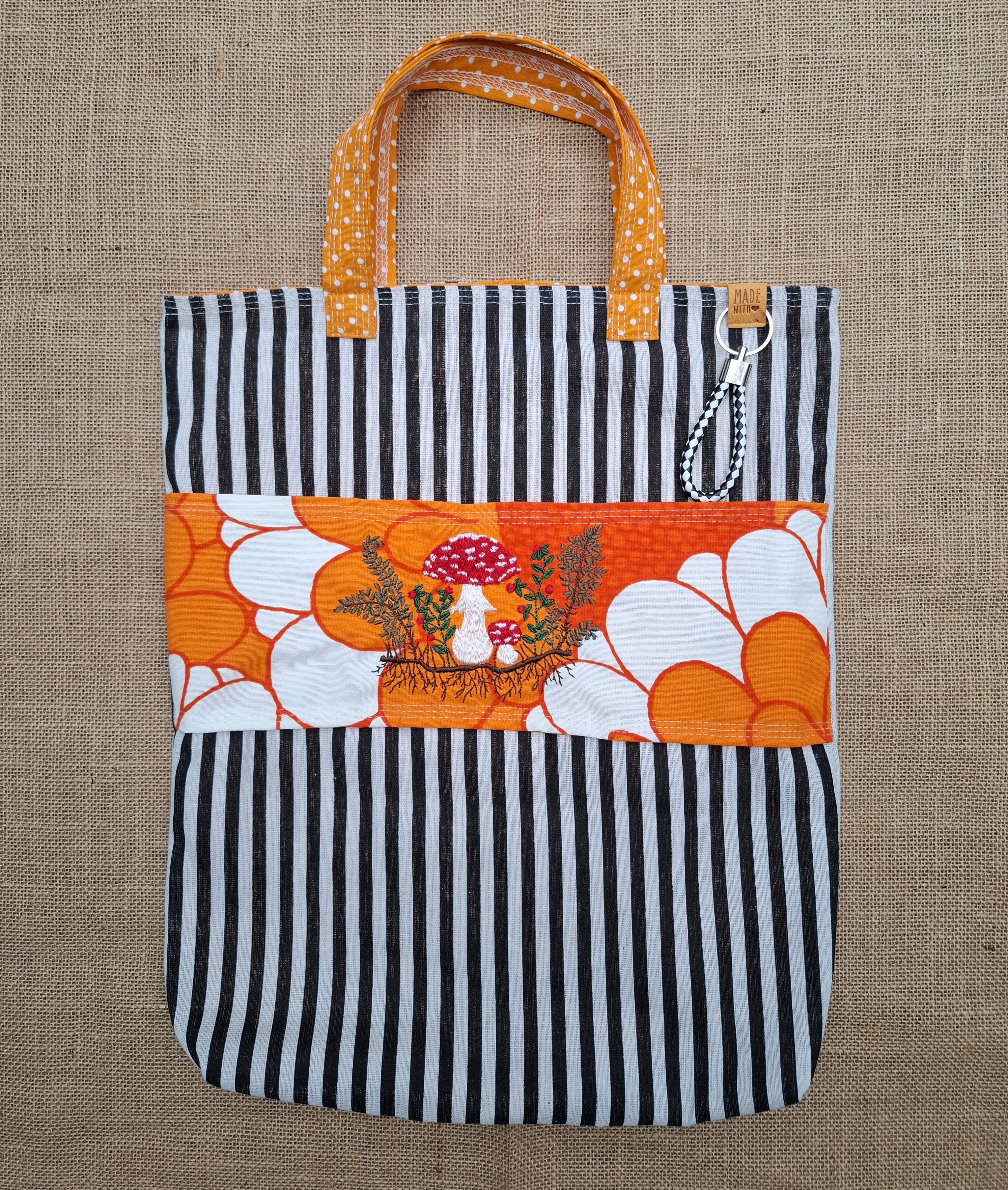 Handgefertigt mit Stickerei "Pilze" und liebevoll bearbeitet.