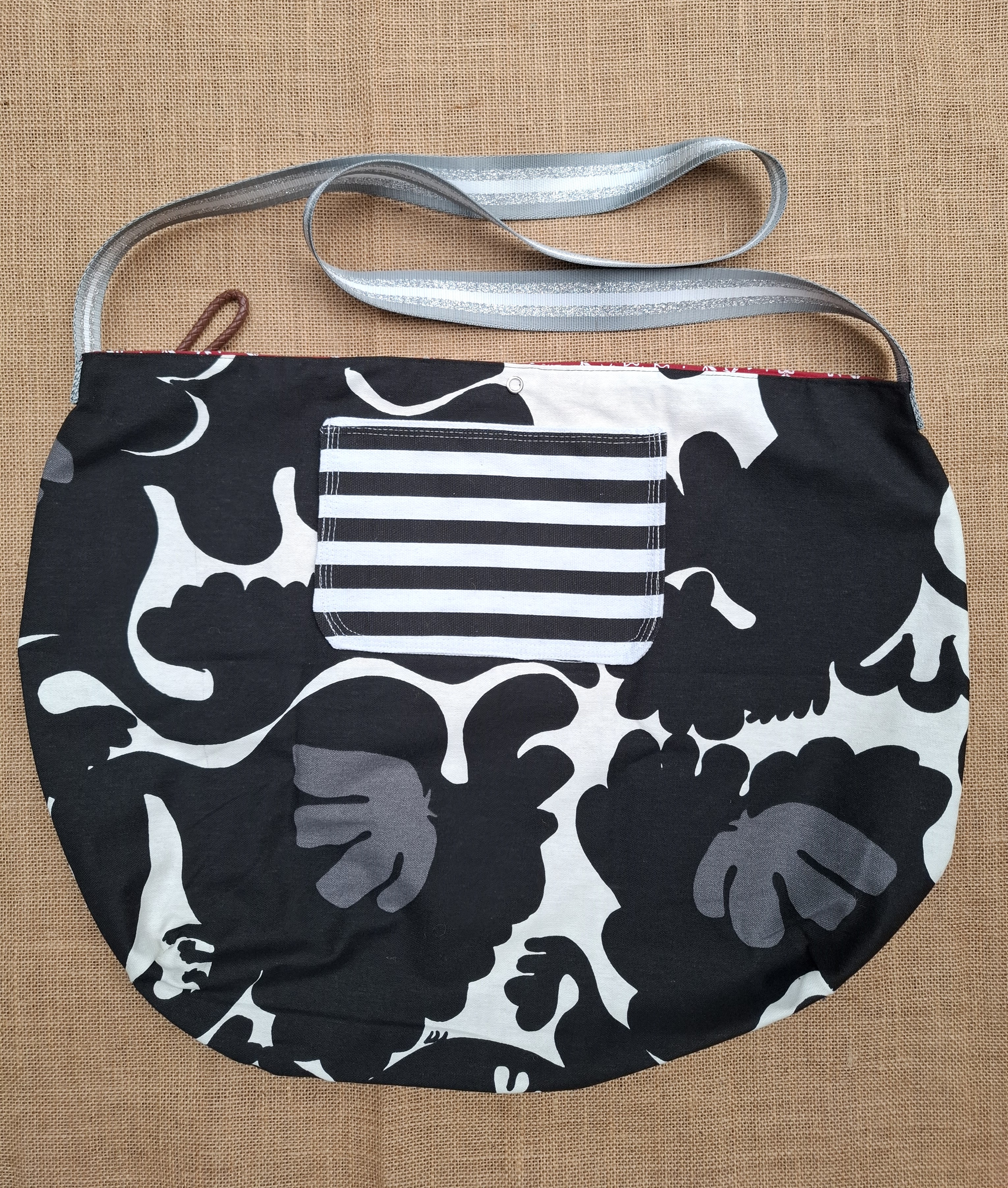 Die Tasche wird oben durch einen Druckknopf verschlossen.
