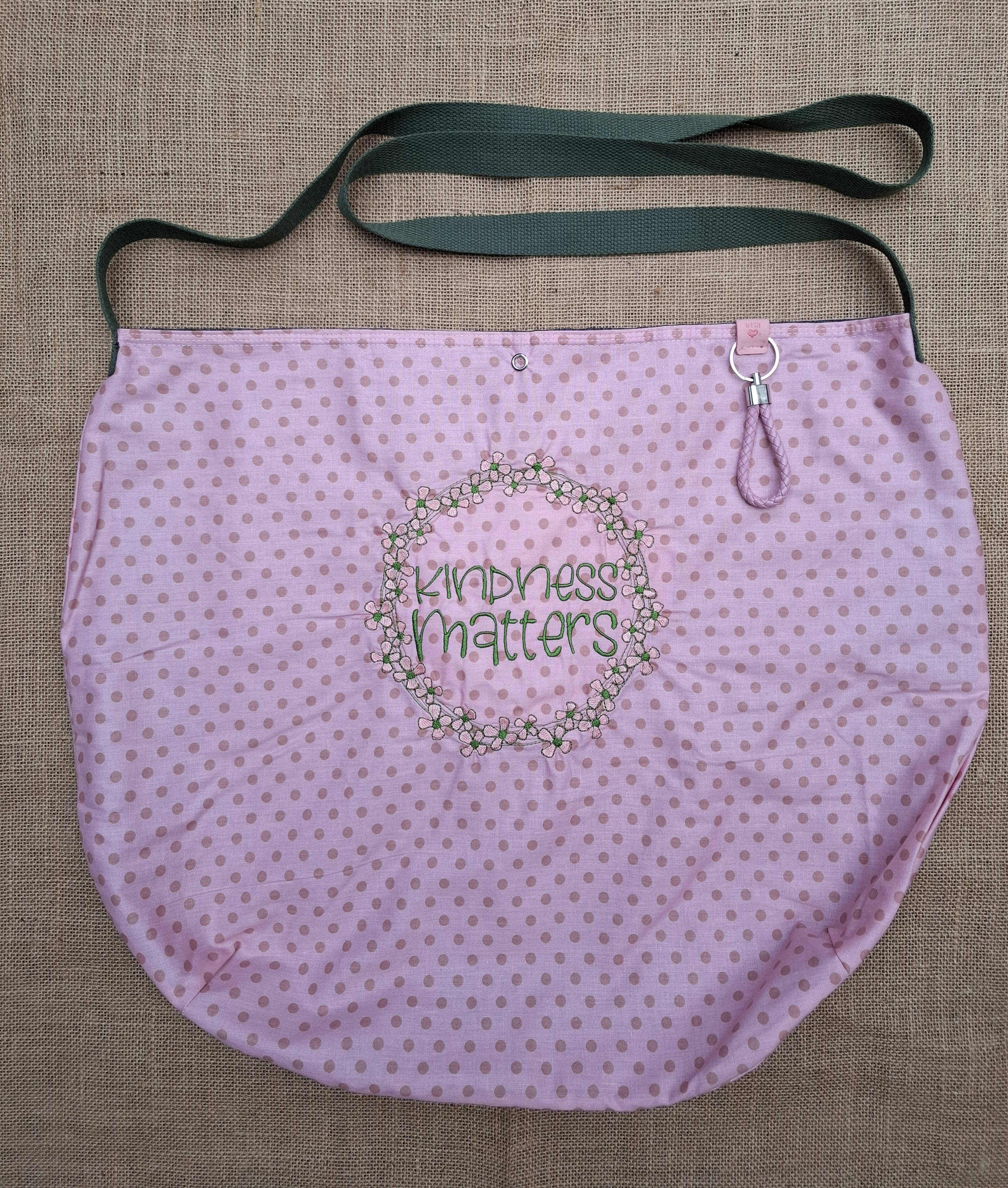 Handgefertigt mit Stickerei "Kindness" .