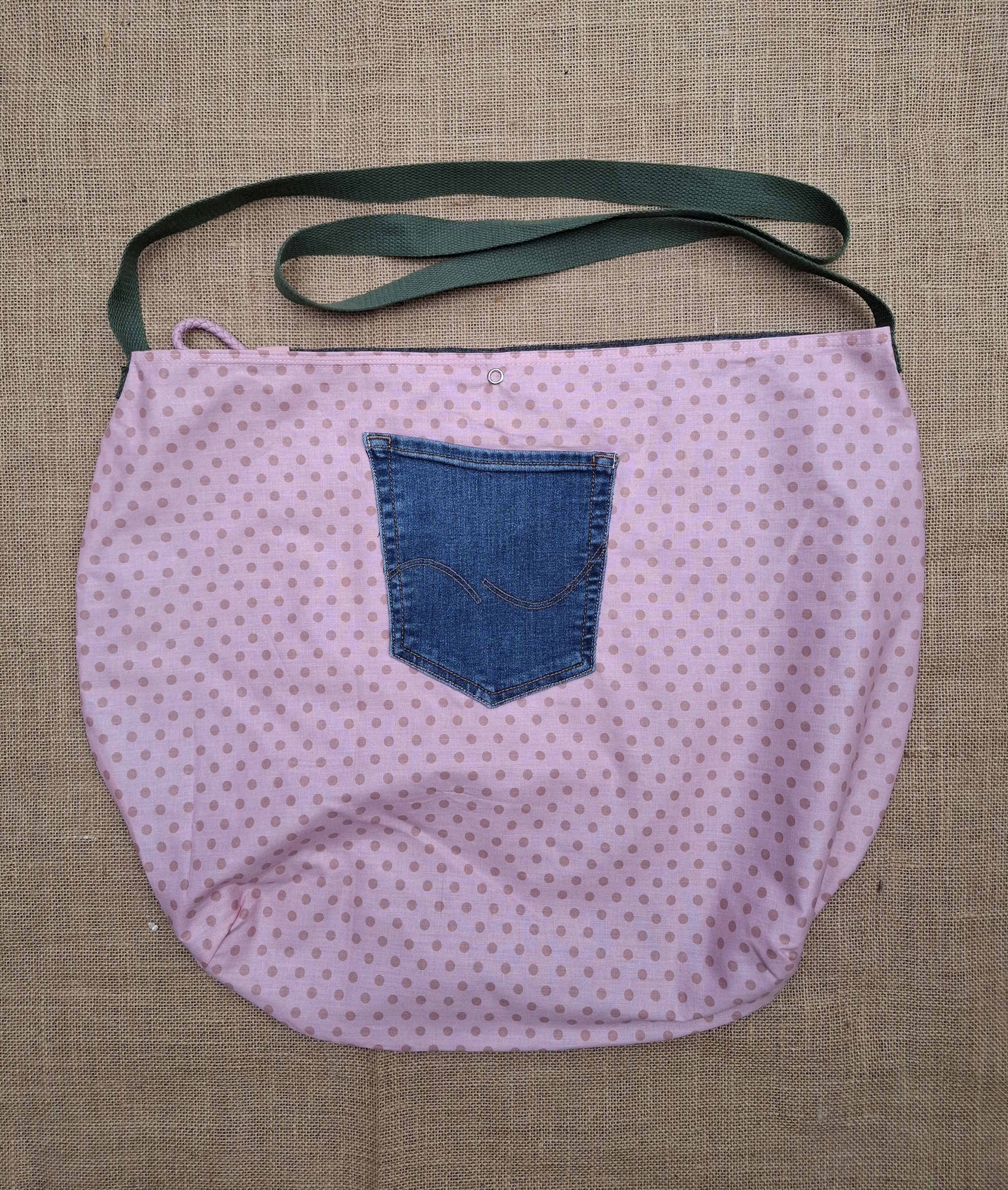 Die Tasche wird oben durch einen Druckknopf verschlossen.
