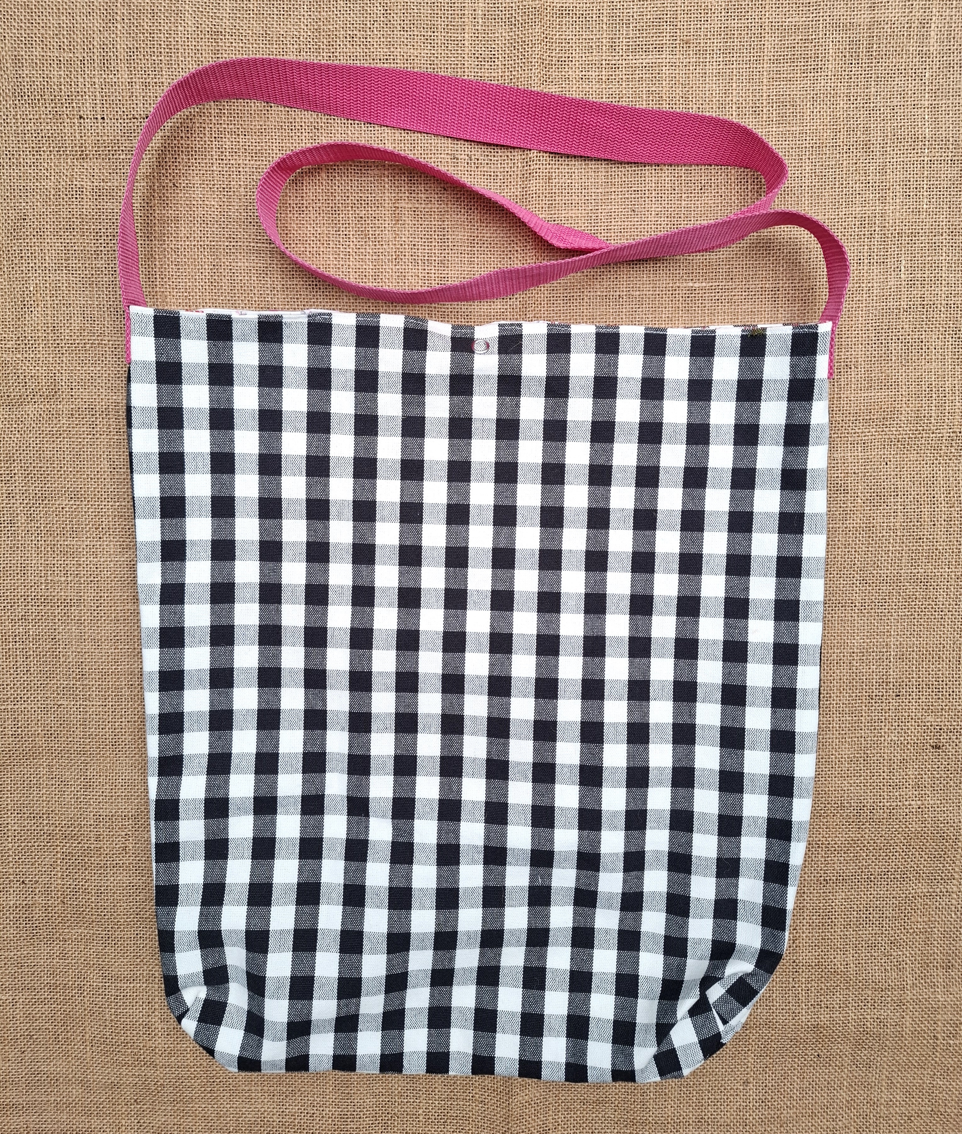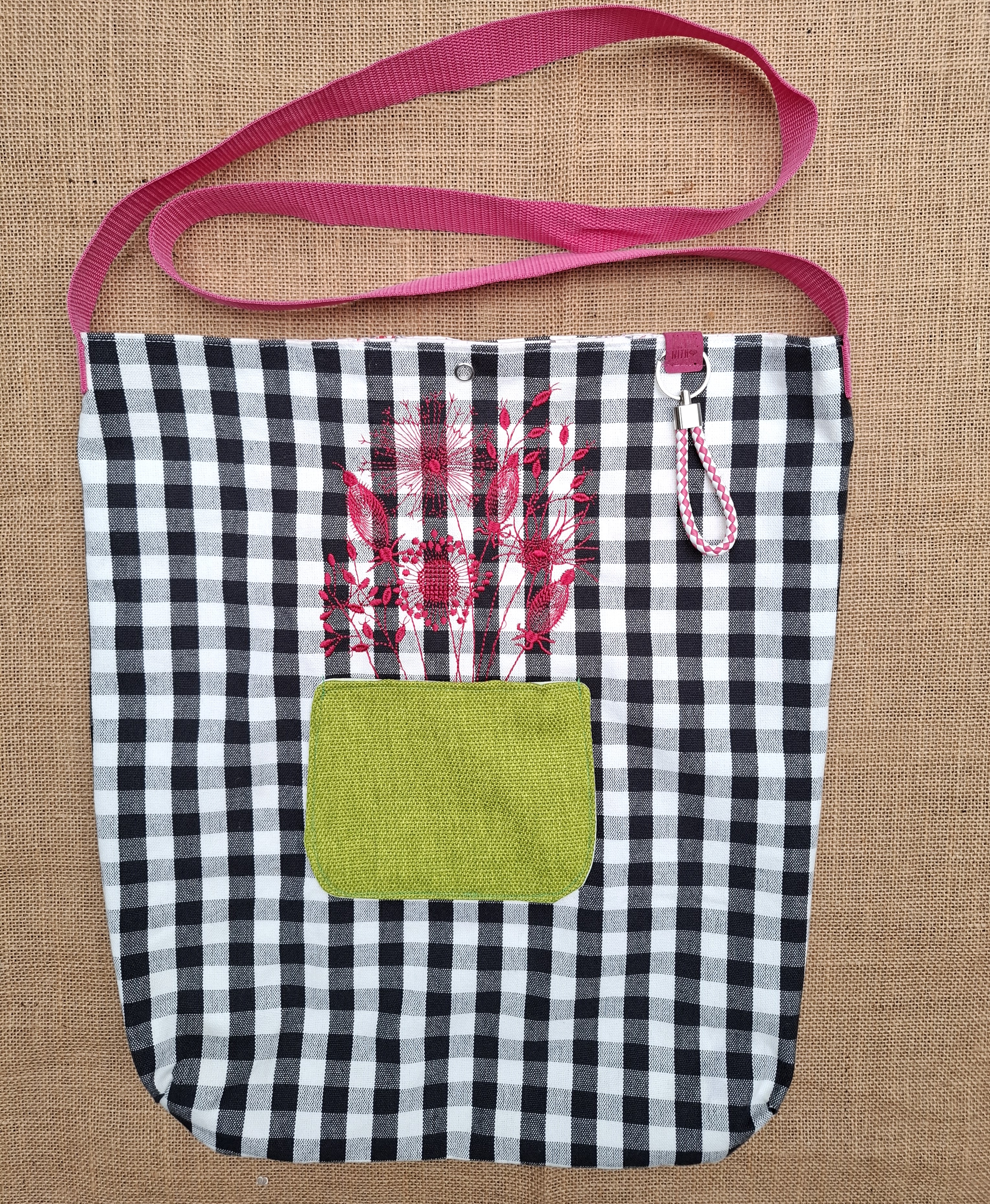 Die Tasche wird oben durch einen Druckknopf verschlossen.